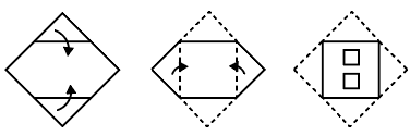 The sequence of folding a piece of paper and the manner in which the folded paper has been cut is shown in the following figures. How would this paper look when unfolded?