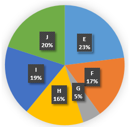What is the value of central angle formed by sector F?