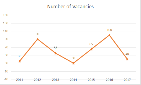 The line graph shows the number of vacancies for executives in a certain company. Study the diagram and answer the following questions.