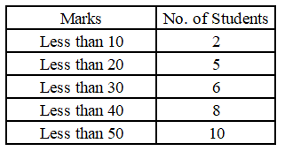 The table below provides information about the marks obtained by a group of students in a test.