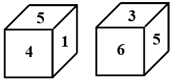 Two different positions of the same dice are shown, the six faces of which are numbered from 1 to 6. Select die number that will be on the face opposite to the one showing '2'.
