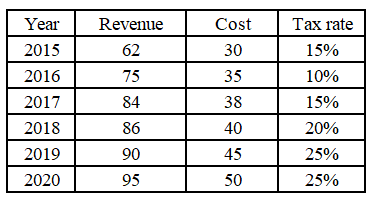 The given table shows the revenue, cost and tax rate for a company for a period of 6 years. The revenue and cost are given in Rs. lakhs.