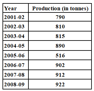 From 2001-02 to 2008-09 generally the production was increased, with the exception of one year. The year was: