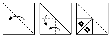 The sequence of folding a piece of paper and the manner in which the folded paper has been cut is shown in the following figures. How would this paper look when unfolded?