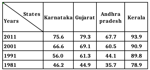The-following table gives data about literacy rates of four different states obtained during four censuses in the country.
