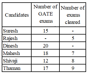 The table below gives information regarding the number of attempts made and number of successful attempts by six candidates in the gate examination.