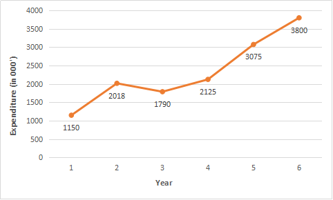 The line chart given below shows the expenditure on clothes (in 000') for the given years.