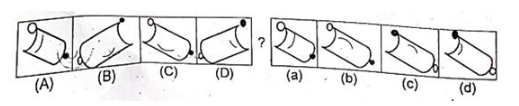 Directions: Each of the problems (Q No 33 to 35) contains four problem figures marked as (A), (B), (C), (D) and answer figures marked as (a), (b), (c) and (d). Select a figure from amongst the answer figures which will continue in the same series as given in the problem figure.