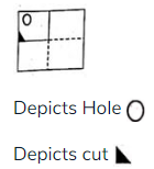 A square sheet is folded along dotted lines and holes/cuts are made as shown. O is hole  is cut. Choose the diagram that depicts how would paper look when unfolded completely?