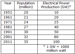 Given below in the table is the decadal data of Population and Electrical Power Production of a country.