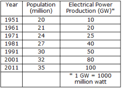Given below in the table is the decadal data of Population and Electrical Power Production of a country.