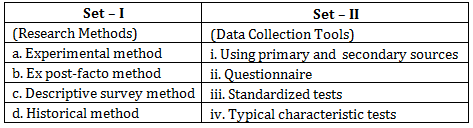 Below are given two sets – research methods (Set-I) and data collection tools (Set-II).