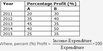 The following table shows the percentage profit (%) earned by two companies A and B during the years 2011-15. Answer the following questions based on the data contained in the table: