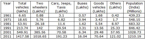 In which year the decadal growth (%) in number of cars surpassed that of the two wheelers?