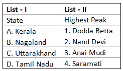 Match List -I and List -II and select the correct answer using the codes given below the list: