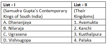 Match List - I with List - II and select the correct answer were from the codes given below.